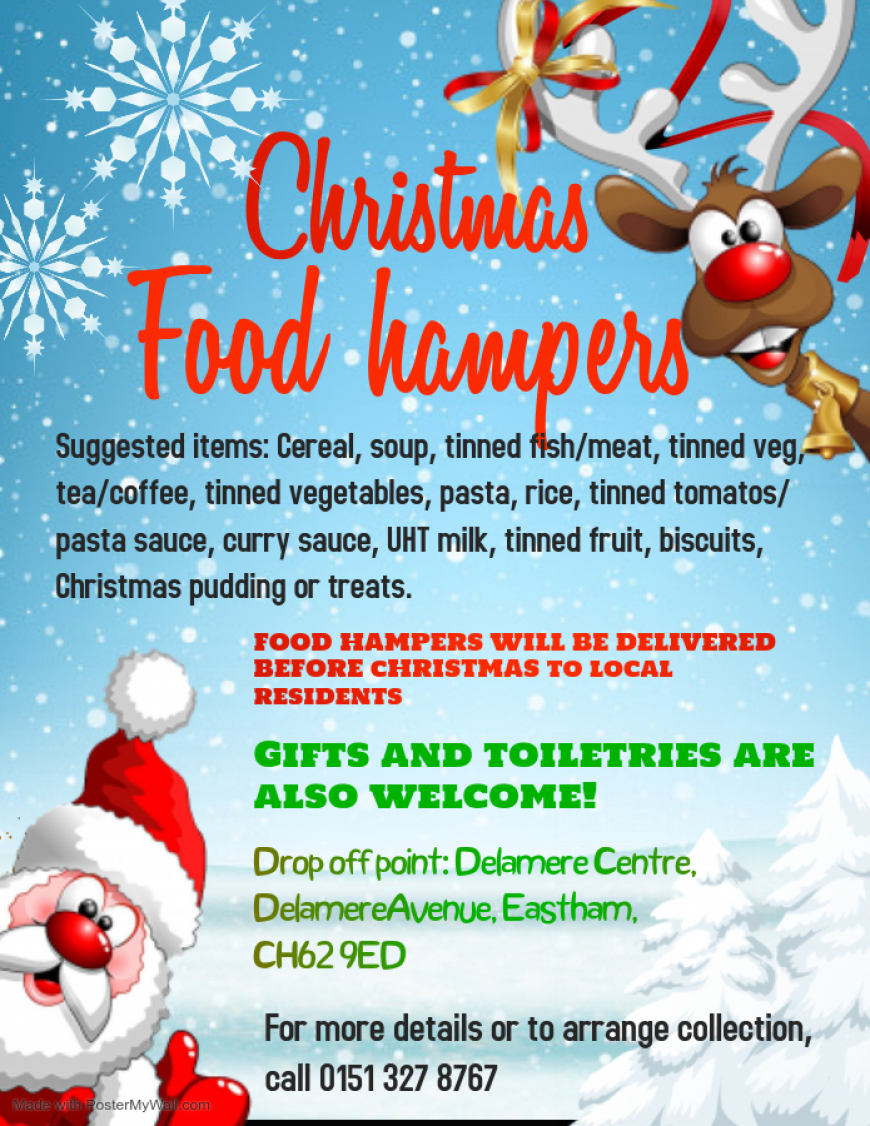 Each year we deliver hampers to local residents in need shortly before Christmas. This year, more than ever this support will be needed. If you can help at all, by donating even one item that would be fantastic!